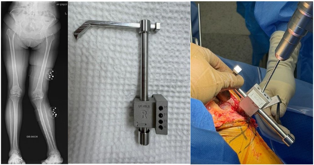 While freehand pinning techniques can be effective, utilizing Dr Liau’s “Liau-inflection point” anatomical landmark, combined with the self-invented pin-guide jig, further eliminates any element of estimation, and help surgeons accurately execute distances and angular measurements consistently. The pin-guide jig, named “LN Mk. II” for the inventors, namely Dr Glen Liau and his colleague Dr Matthew Ng, features a retractable stylus, laser-marked 1mm depth measurements, and interchangeable guide blocks that allow pins to be inserted at precise, clinically relevant angles of degrees. It is designed for both the left and right knee. “This is a highly precise measuring device,” Dr Liau clarifies. “It further elevates existing traditional and our technique from being a free-hand method of drilling pins to a reliably executable standard of care, with 1 millimeter and 1 degree accuracy, ensuring any surgeon can achieve the same precision. With this accuracy, we have also been able to shorten our single main central incision, making it our surgeries even more minimally invasive.”